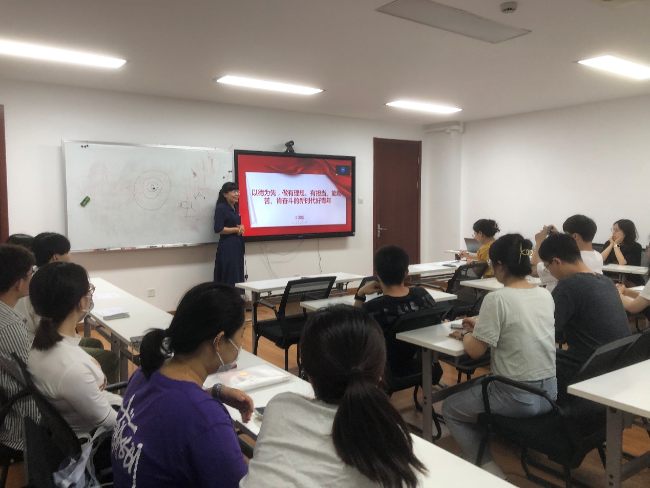 2023年6月5日晚,学院副院长、党委委员王媛媛以“以德为先,做有理想、有担当、能吃苦、肯奋斗的新时代好青年”为主题,为结对党支部2021级闵行校区博士研究生党支部及学院本学期新发展的党员上了一堂生动的党课。
