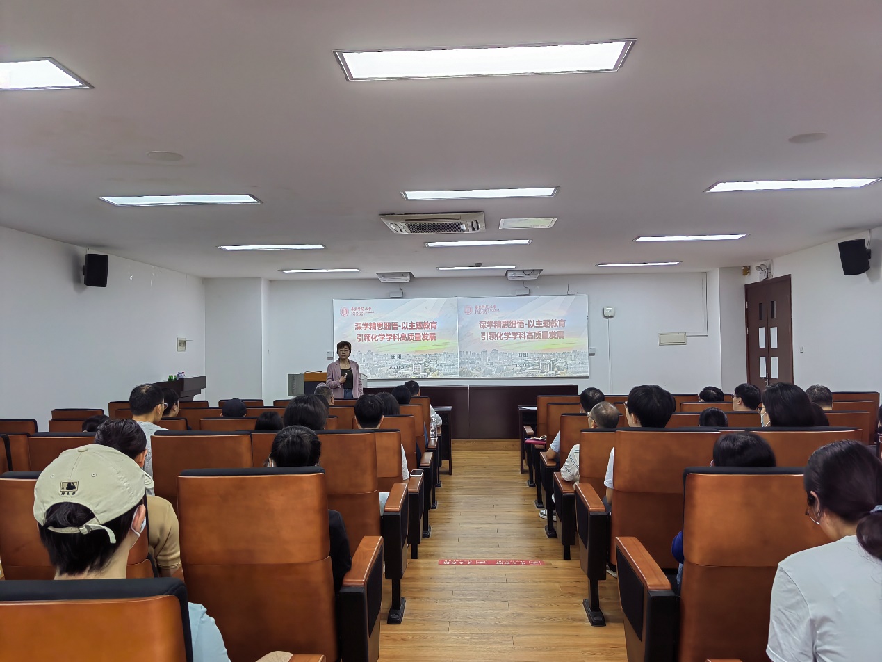 2023年6月8日上午,av影片 院长田阳以“深学精思细悟——以主题教育引领化学学科高质量发展”为题,在闵行校区135报告厅给教工党支部的党员上了一堂精彩的党课。