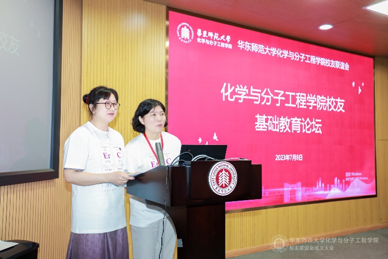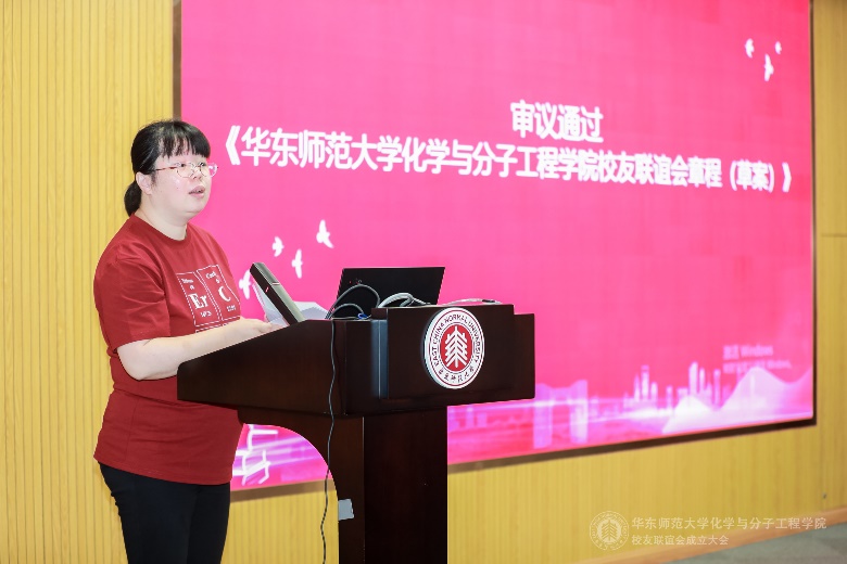 王婷婷代表学院校友联谊会筹备组汇报筹备工作。在学校校友会的关心指导下,学院于2023年初成立筹备组,深入走访校友,听取校友意见建议,召开了多场筹备会议,完成了校友联谊会章程的起草与意见征询,从企业界、高等教育、基础教育、文化事业单位四个领域邀请不同毕业届别、不同专业层次的校友组成首届校友理事会,并邀请学院首任院长何鸣元院士担任学院校友会顾问。
