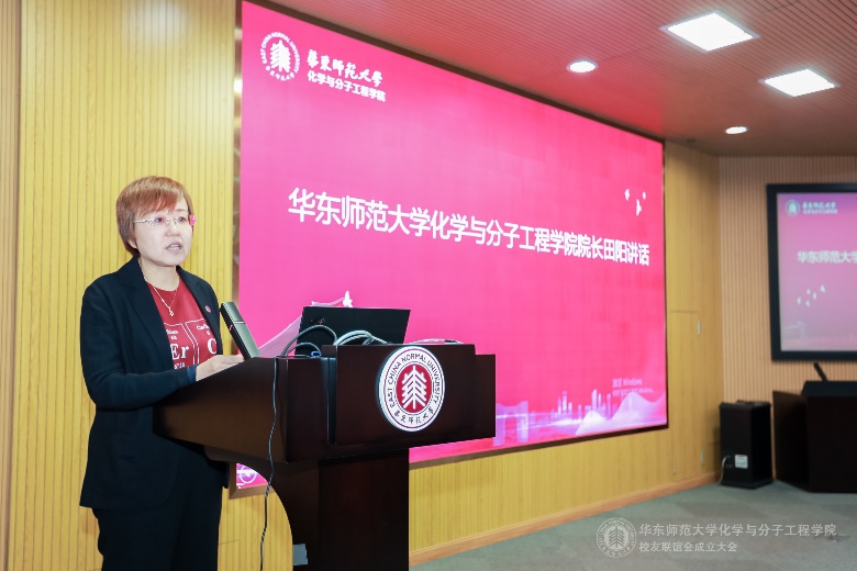 学院院长田阳在发言时对校友们长期以来对学院的关心支持帮助表示衷心感谢。她表示一代代化学人筚路蓝缕、精耕不辍,与时代同行,与社会共进,以风雨兼程的毅力不断成长,以励精图治的劲头奋发有为,校友们的成功是推动学院发展的不竭动力。希望以校友联谊会成立为契机,搭建沟通合作桥梁,进一步联络师生感情,凝聚校友力量,开启校友和学院共建、共进、共享新篇章。