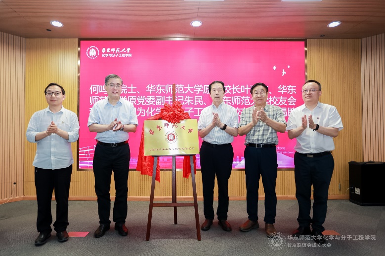 何鸣元、朱民、叶建农、雷启立、斯阳为学院校友联谊会揭牌