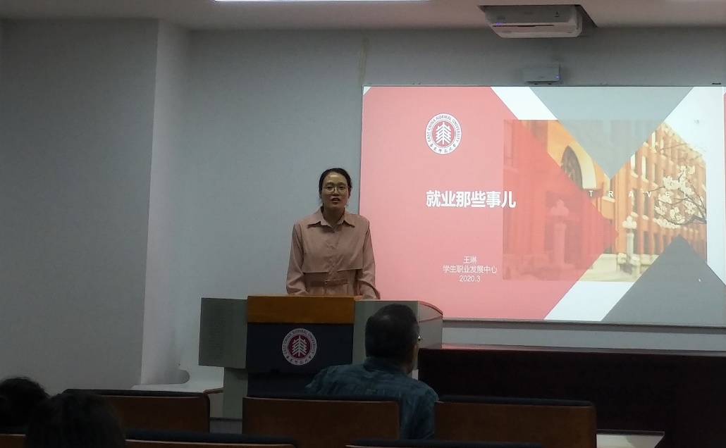 首先,王琳老师指出2021届或将迎来史上最难就业季。受疫情影响,本年度招聘市场萎缩,原有的产业被迫转型,餐饮、零售、外贸等行业遭受打击,此外,因求职方式的转变,个体求职竞争将更加激烈。不过,王老师也列举了化学院近三年的就业率,指出在过去的三年里,化学院就业工作成效显著,就业各项指标表现良好,因此,不论就业形势如何,抓住求职黄金期,积极开展求职工作,才是正确的应对之道。