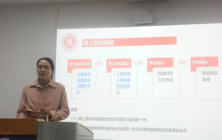 10月15日下午14:00,av影片 邀请校学生职业发展中心的王琳老师,于闵行化学楼135会议室开展了第二场求职启航讲座。王琳老师以“就业那些事儿”为题,详细讲解了2021届毕业生就业形势、就业准备、就业流程和上海市落户政策。讲座由闵行毕业生辅导员王毅老师主持。