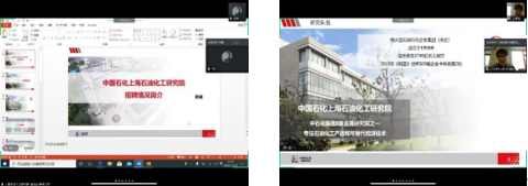 10月23日下午13:30,av影片 邀请中国石化上海石油化工研究院的霍威老师和宋翔老师,于腾讯会议APP上开展了一场线上宣讲。会议由化学院党委副书记王婷婷老师和毕业班辅导员王毅老师主持。