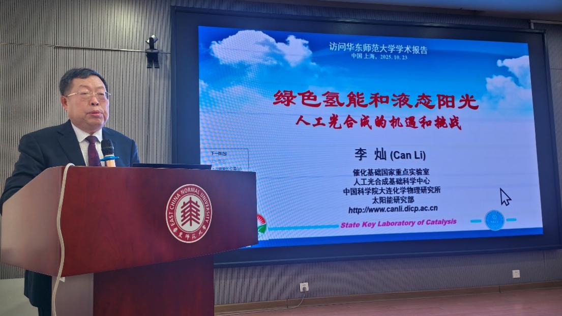 2025年10月23日上午10点,中国科学院院士、中科院大连化学物理研究所李灿研究员受上海市绿色化学与化工过程绿色化重点实验室名誉主任何鸣元院士的邀请,在av影片 普陀校区化学馆A205会议室为av影片 、绿色化学重点实验室的师生们带来了一场“大师讲堂系列学术报告”。本次学术报告,李灿院士围绕“绿色氢能和液态阳光甲醇:人工光合成的机遇与挑战”展开,主要介绍了他们研究团队在人工光合成这一领域的最新进展,特别是在以绿色氢能和液态阳光甲醇为代表的人工光合成研究中遇到的机遇与挑战。