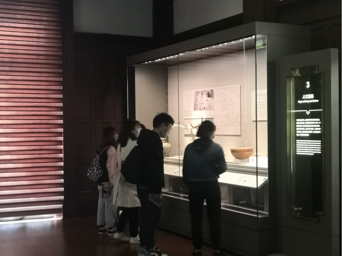 博物馆《古代上海》部分,以史前文明、古代发展、城镇兴起为线索,展现古代上海地区人类活动、市镇繁荣、文化兴盛以及鲜明的地域特色和辉煌的文明成就。期间党员们驻足细看,惊叹感慨历史的变迁,文明的发展,人类的伟大。
