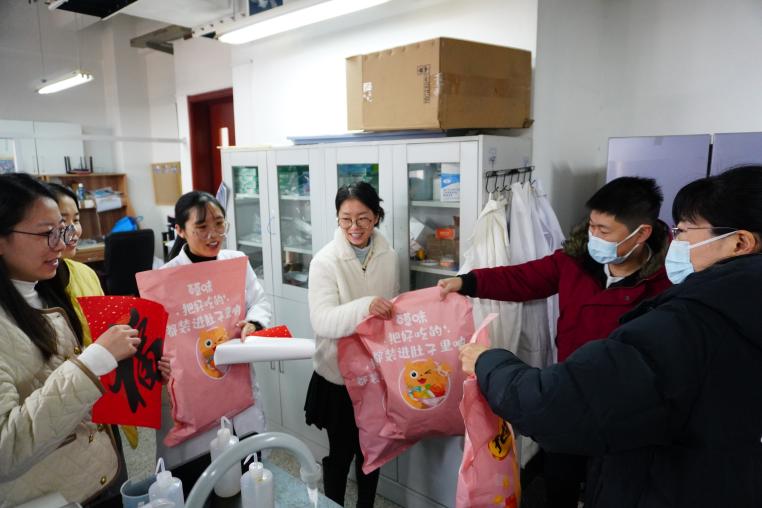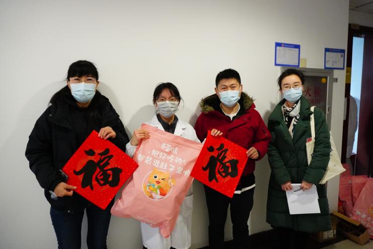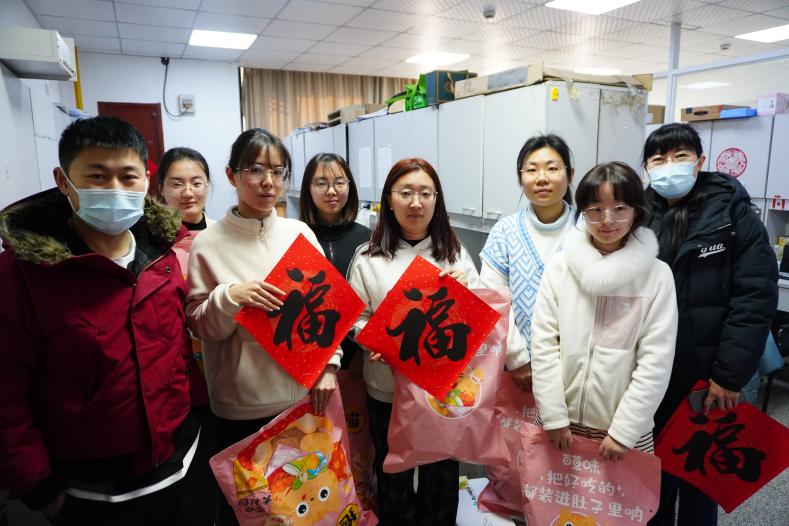 学院老师为留校同学送出了零食大礼包与新春福字,向依然坚守在实验室的同学们表达了关心,希望大家度过一个平安、温暖的春节,并鼓励同学们积极参与学校、学院组织的各类留校活动,增进友谊。此外,老师们也认真听取了同学们的反馈,并给予了针对性的建议和指导。