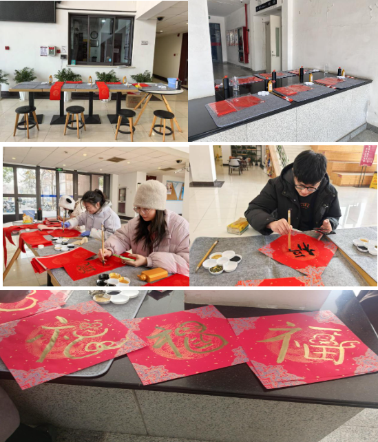 为让学生们感受到浓厚的春节氛围,学院还举办了学生和老师共同参与的福字、春联书写活动。在活动中,大家挥毫泼墨,书写着吉祥的福字和春联,表达对新年的祝福和美好期许,寄托着大家对家国安康、学业有成的期望。