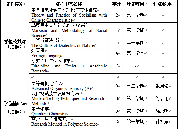 (二)在高分子学科上掌握坚实宽广的基础理论和系统深入的专门知识,同时要掌握一定的相关学科知识,具有独立从事科学研究工作的能力,在科学或专门技术上做出创造性的成果。