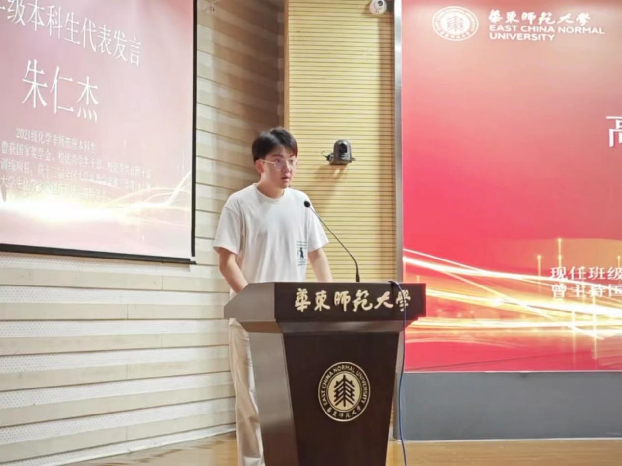 高年级本科生代表朱仁杰同学热烈祝贺和欢迎新同学们来到av影片 这个大家庭。他鼓励同学们在打好专业基础之余,进入实验室积极探索,学到“真知识”、“真本领”;利用学校提供的各种资源多元发展,积极参加社会实践等,抓住机会提升自己。最后,他希望同学们课余可以去体验上海开放包容的城市文化。