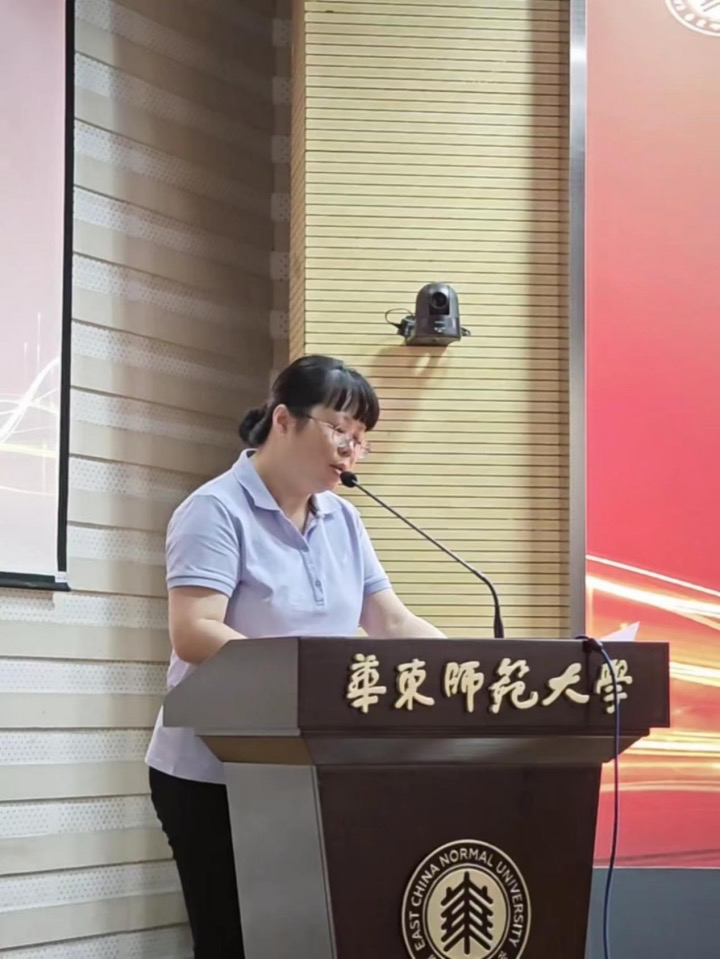 张琪伟教授作为教师代表发言,他讲到同学们进入新阶段要积极适应角色转换,不仅要学会学习,更要学会做人。他建议大家要主动学习、向大师学习,提高自我修养,完善人格构建,树立正确价值观,掌握扎实科学技能。张老师引用了一个形象生动的例子勉励同学们创造真正的、推动国家发展的价值,树立正确价值观,培养高级使命感、责任感。最后,张老师祝福大家在华师大的学习生活中,建立友谊、锻炼意志、努力创新、勇攀高峰。