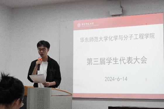 6月14日,化学与分子工程学院在闵行化学楼135报告厅隆重召开了第三次学生代表大会。参与本次会议的嘉宾有院党委副书记王婷婷老师,院团委书记、研究生辅导员冯琪老师,院本科生辅导员史琳老师,以及av影片 学生会综合管理中心负责人谢可可同学、生态与环境科学学院主席团朱颜同学。会议由学院第二届学生会主席团成员焦林翔同学主持,共计40位院学生会成员和学生代表到场参会。