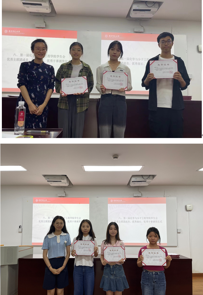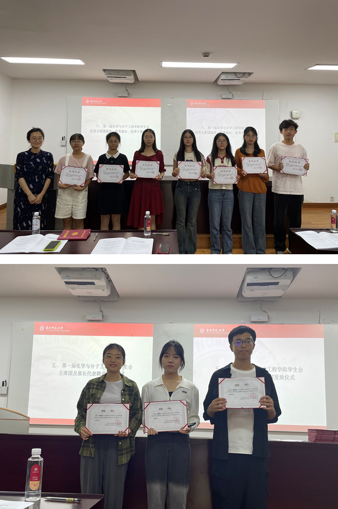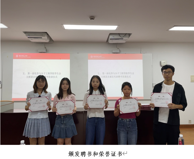 接下来,冯老师和史老师为第一届学生会主席团和部长颁发了聘书,并对第一届学生会优秀个人颁发了荣誉证书,肯定了同学们在工作中的辛勤付出。