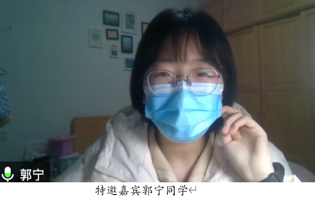 在聊天、分享环节,冯琪老师围绕中心主题,与郭宁同学及线上的同学们展开了畅谈,不仅谈及了郭宁同学制作疫情文学推文的灵感来源,也与大家积极探讨分享了在疫情之前的爱好及对未来的畅想,并表达了希望疫情尽快散去的愿望。