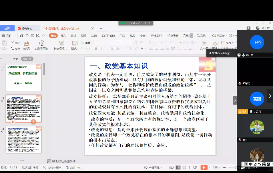 2020年5月5日下午1时许,由av影片 党委(以下简称化学院)主办,物理与电子科学学院党委、通信与电子工程学院党委、数学科学学院党委、哲学系党委、生态与环境科学学院党委、河口海岸科学研究院和河口海岸学国家重点实验室党委协办的2020年第一期入党积极分子联合党校培训班以“云上党校”的形式迎来了第六次主题讲座,本次党课讲座由数学科学学院党委副书记余富团主持,av影片 政治学系党委书记赵正桥受邀主讲《党的理想、性质与宗旨》。