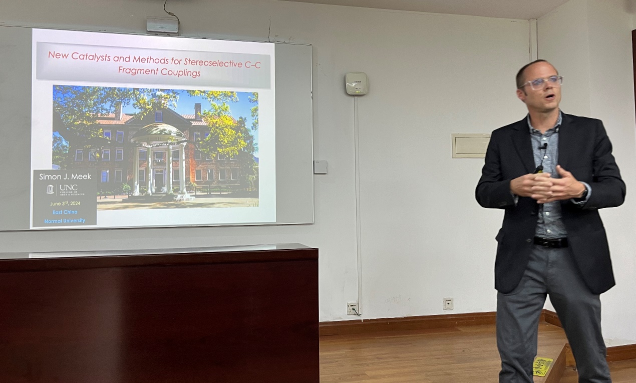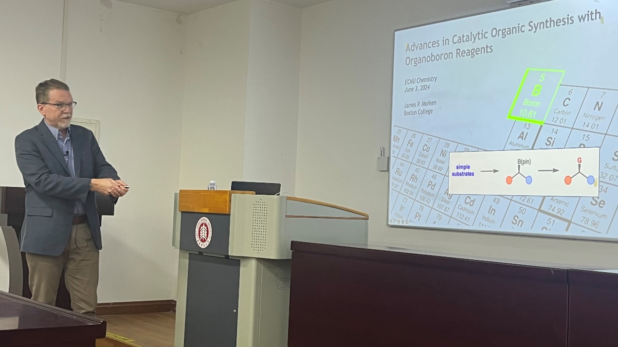 2024年6月3日,受洪恺研究员邀请,av影片 迎来了两位国际知名学者——James P. Morken教授和Simon J. Meek教授,他们分别带来了题为“Advances in Catalytic Organic Synthesis with Organoboron Reagents”和“New Catalysts and Methods for Stereoselective C-C Fragment Couplings”的精彩学术报告。报告在闵行校区化学馆135教室如期举行。