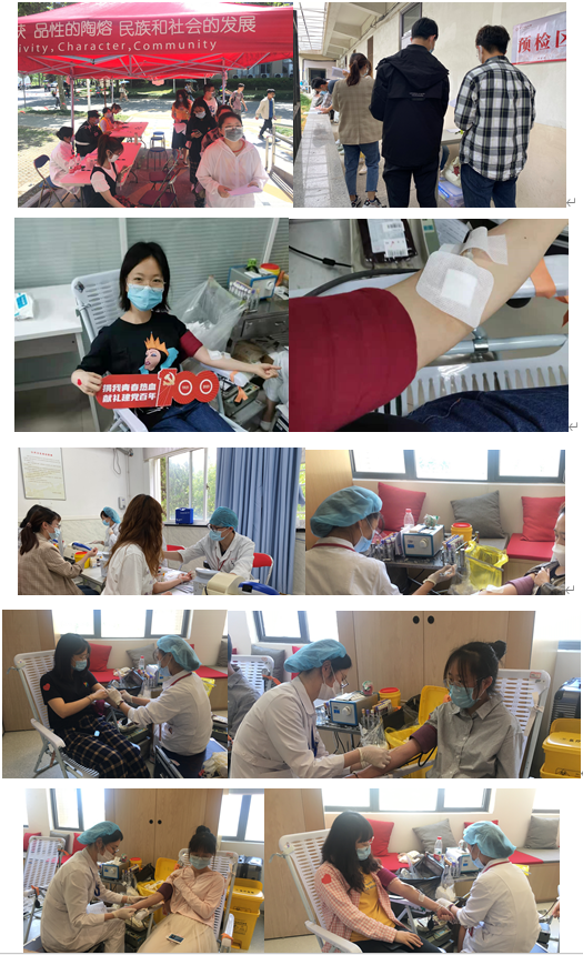 学生积极参加“捐我青春热血 献礼建党百年”无偿献血活动。5月6日和10日上午,学院20名同学们在辅导员李小玲、王梦雅老师的带领下,分别在中北和闵行校区圆满完成了无偿献血活动。