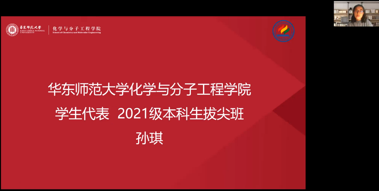 2021级本科生拔尖班孙琪作为学生代表发言,她期待与克拉玛依三中的同学们一同点亮化学的奇思妙想,结合课本知识与前沿科学视野构思猜想,开展科创项目与实验设计,感受化学的无穷魅力。
