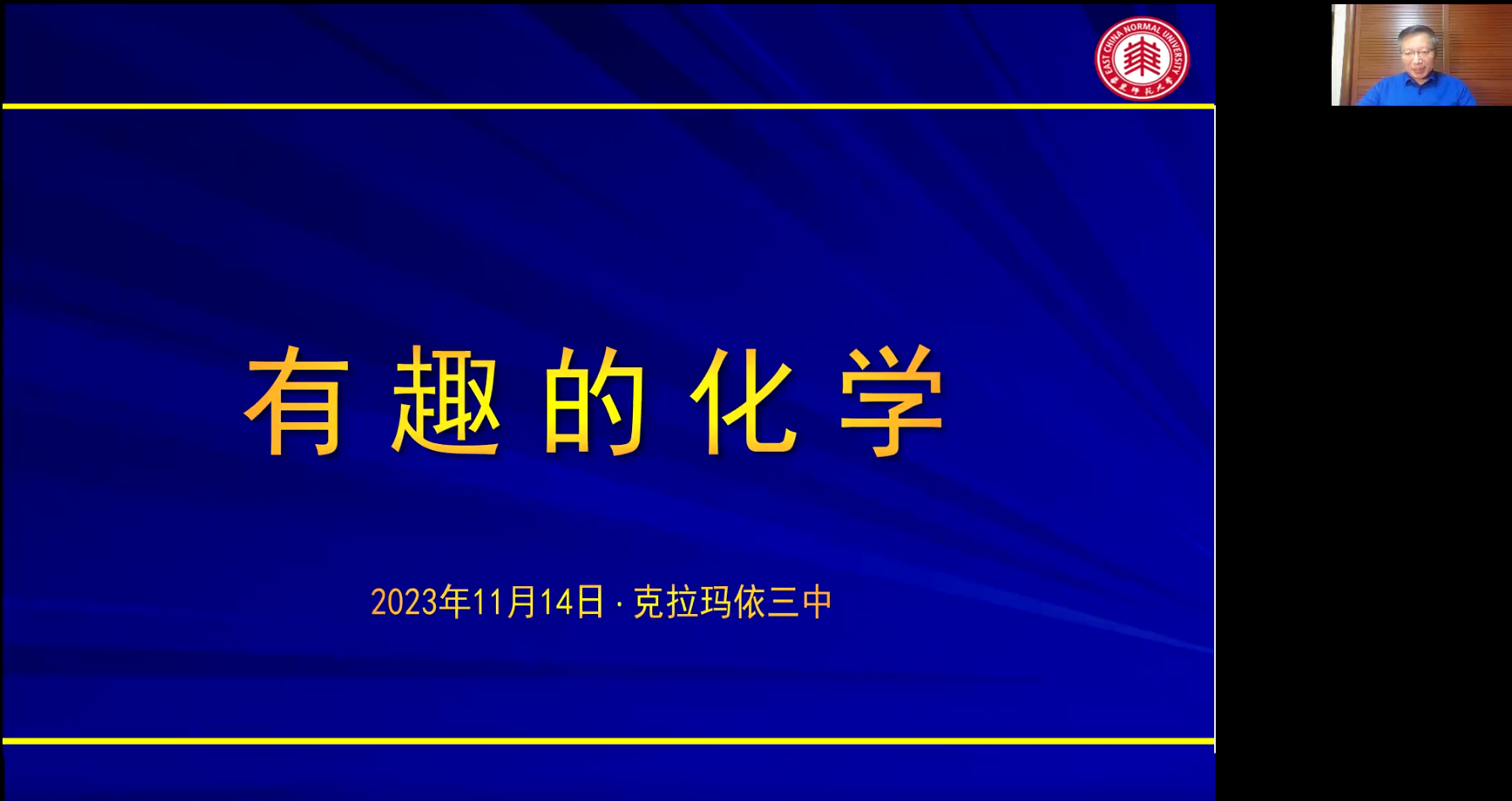 结对仪式上,av影片 陈启明教授以《有趣的化学》为题,给三中的同学们开启了奇妙的化学之旅。陈老师通过多样的图片、生动的视频、有趣的讲解,浅入深科普了化学的起源、研究的对象、研究的本质和广泛应用,帮助初中生同学们初识化学的风采,激发对化学的兴趣。