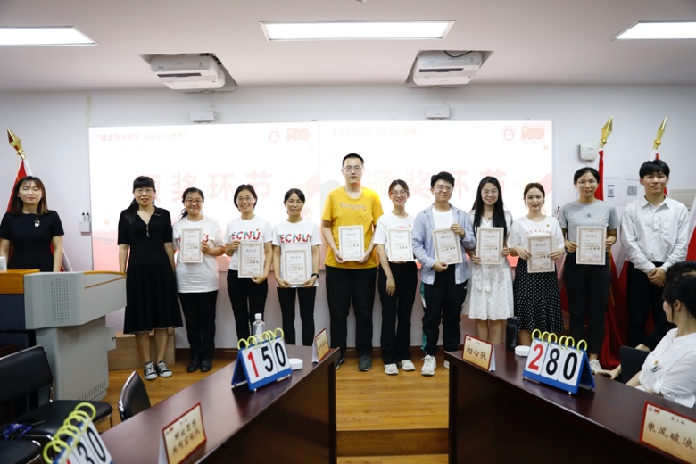 经过三个环节的激烈角逐,2020级中北研究生党支部、2019级中北研究生党支部、绿色化学和新药创制党支部代表队积分并列第一,三支代表队不得不通过加时赛决一胜负。经过激烈抢答,最终绿色化学和新药创制中心教师党支部代表队技高一筹,以精彩的表现拔得头筹;2019级中北研究生党支部和2020级中北研究生党支部代表队分别获得二等奖。闵行教师党支部代表队、闵行高年级和2018级研究生党支部代表队以及2020级闵行研究生党支部代表队分获三等奖。中北高年级和2018级研究生党支部代表队、2019级闵行研究生党支部代表队获得优秀奖。