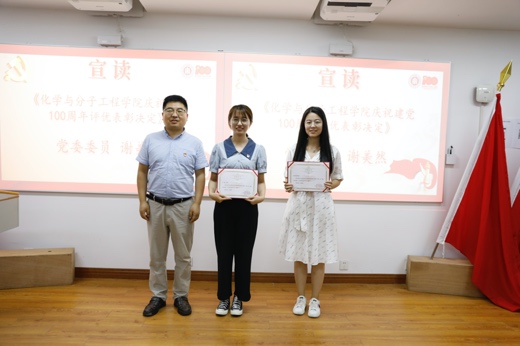 接着,党委委员谢美然宣读了《av影片 庆祝建党100周年评优表彰决定》,并号召学院全体党员及党支部向受表彰的优秀党员和基层党组织学习。经过党员申请、支部评议和学院党委审议等程序,2名优秀党支部书记、11名优秀共产党员及1个先进基层党支部获得表彰。