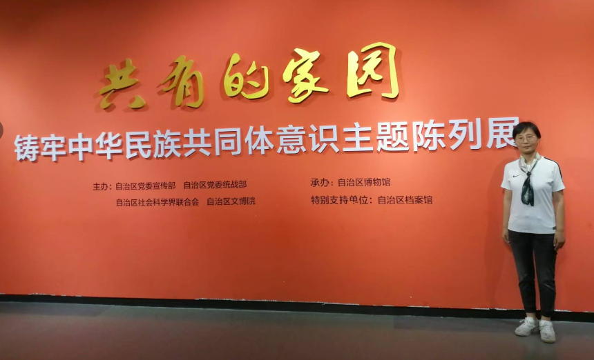 王洪华老师参观了新疆维吾尔自治区博物馆,汲取了“爱国爱疆、团结奉献、勤劳互助、开放进取”的精神养分,从一件件文物中感受到历史的厚重和文化的多样性;领会到党中央治疆方略在新疆的成功实践,深刻感悟民族团结进步和谐发展的精神文化内涵。她表示,在今后的工作当中,要以身作则,自觉增强铸牢中华民族共同体意识。