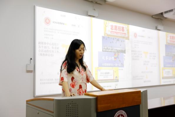 在讲解中,研会文体部历次的趣味活动、学术部干货满满的知识讲座、组织部严谨的工作作风、就业部丰富多彩的生涯活动、融媒体部的运营魅力让研一新生们报以热烈掌声。