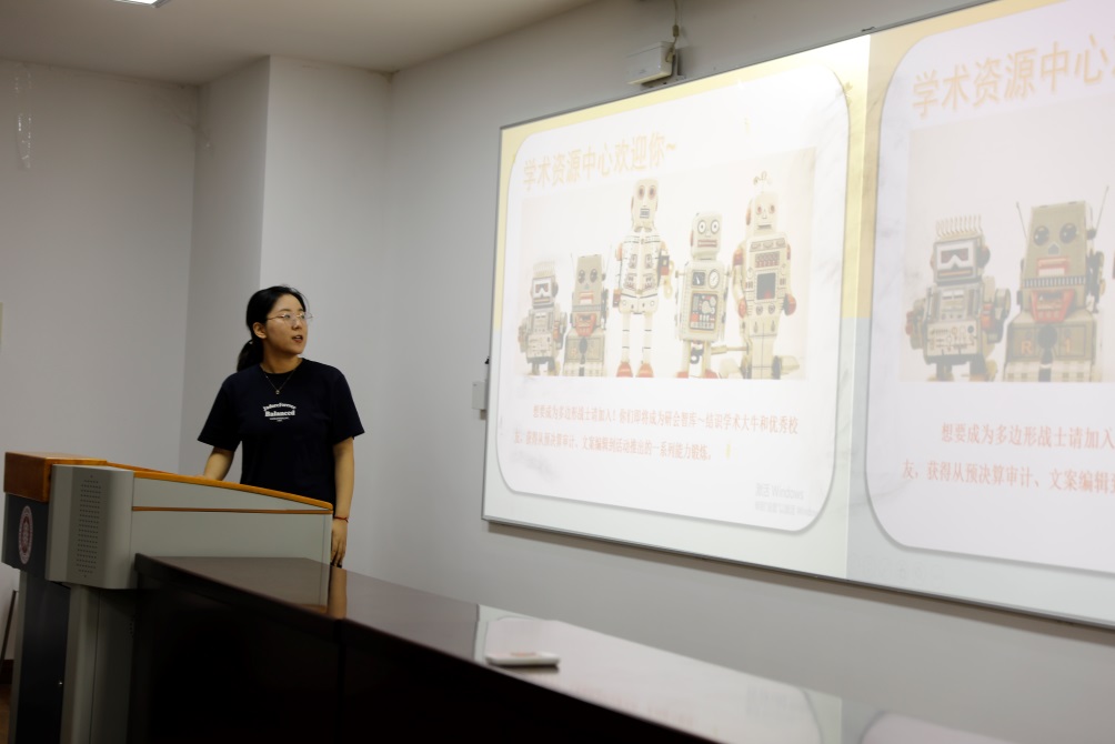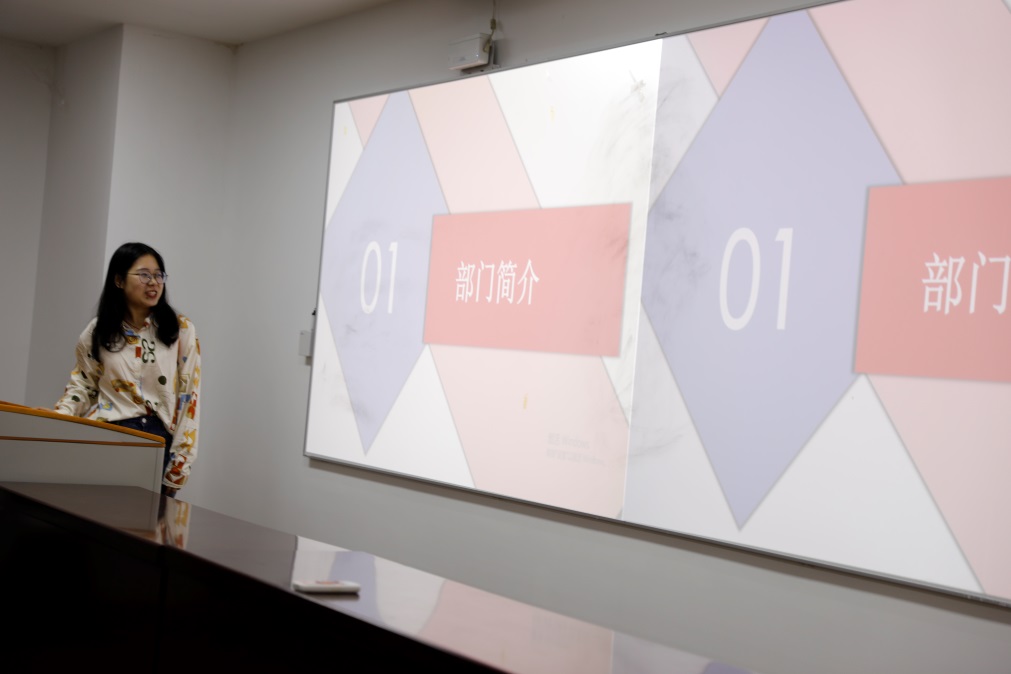 随后,两校区各部门负责人依次以PPT的形式向研一新生介绍了部门职责、过去一学年的工作总结以及新一学年的工作计划。各部门风格多样的介绍、精美的演示文稿和丰富多彩的部门生活深深吸引了新生们的关注。