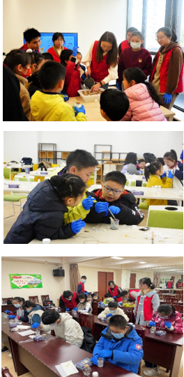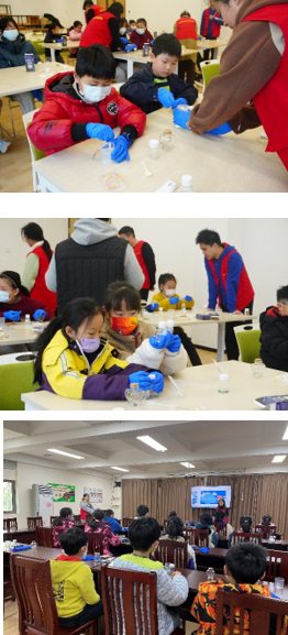 3月5日,av影片 与吴泾镇团委,联合紫竹半岛社区和嘉怡水岸社区,由化学院青年化学社和本科生党支部组成的“春风化雨”志愿者队,面向社区的小朋友、大朋友们开展了化学实验科普活动,共同制作“天气瓶”和“水中花园”小实验。