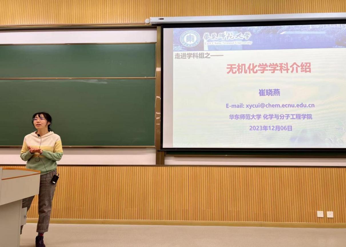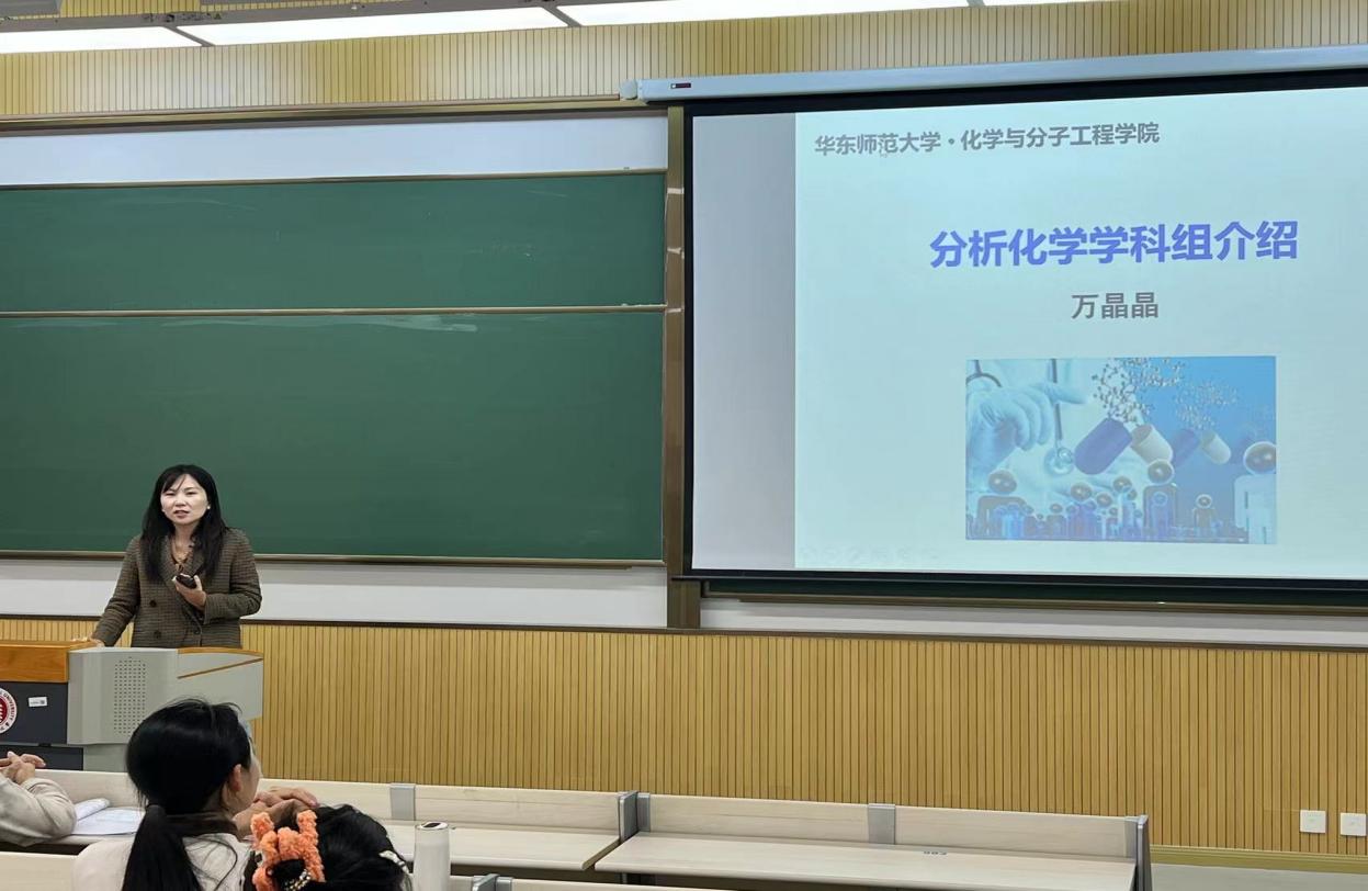 2023年12月6日下午,av影片 “走进学科组”系列讲座之“无机化学学科组介绍”和“分析化学学科组介绍”在华师大闵行校区四教111教室顺利举办。此次讲座由分管本科教学的副院长王媛媛教授主持,“无机化学学科组介绍”、“分析化学学科组介绍”则分别由无机化学学科组长崔晓燕教授、分析化学学科组长万晶晶教授主讲。