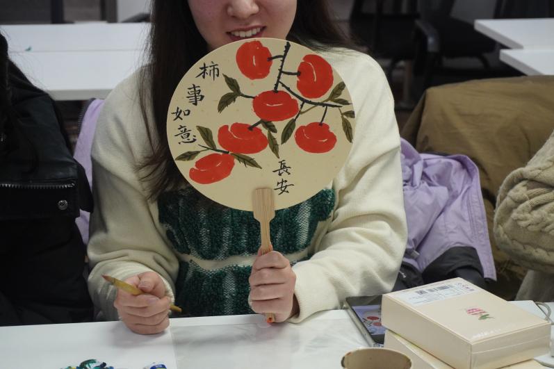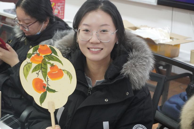 在活动的最后,同学们一起将手里绘制的团扇举起拍照留念,大家脸上都洋溢着笑容,感受到了相聚团圆的情谊。希望本次活动为离家在校的同学们带来龙年元宵节的问候和祝福,愿大家在新的一年里健康快乐,万事如意!