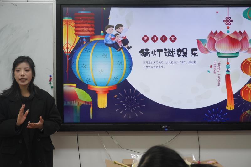 元宵节当然少不了猜灯谜,这个游戏既能启迪智慧又能增添节日气氛,让大家感受到古代劳动人民的聪明才智和对美好生活的向往。在活动中,同学们积极举手回答,现场气氛十分热烈,现场一片欢声笑语。