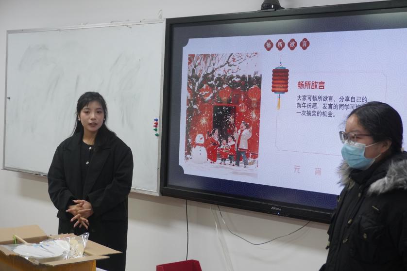 玩过了游戏,绘制了团扇,就来到了“畅所欲言”环节。在这个环节里,现场同学与大家分享了自己的新年祝愿,一个个美好的愿望“满场飞舞”,为龙年的元宵节增添了浓浓的节日气氛。