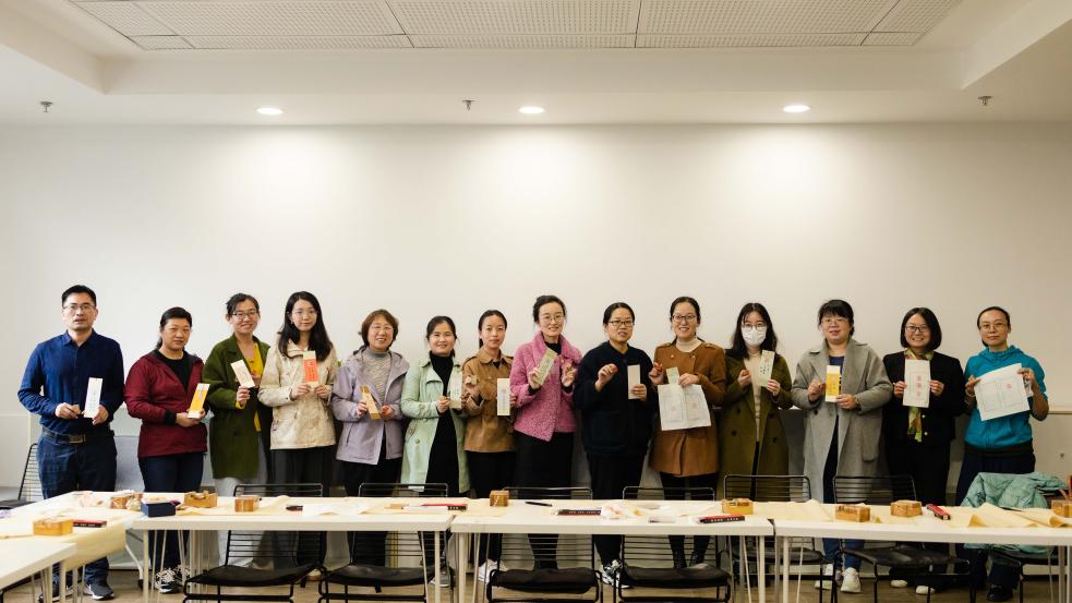 篆刻是中国古文字退出历史舞台之后,至今仍被广泛使用的古文字“活化石“,是宣传汉字文化的重要载体。了解中国文字书、刻的关系,体验方寸天地、气象万千的艺术内涵是我们和传统优秀文化的一次密切接触。在此次活动中,老师们了解了篆刻、印章基本文化知识以及印学史,并通过沉浸式的亲身体念,对篆刻产生了浓厚的兴趣。老师们纷纷表示篆刻艺术是富有趣味性的,希望在今后的生活中能再有机会接触到这门传统的中国艺术,传承优秀传统文化、坚定文化自信。