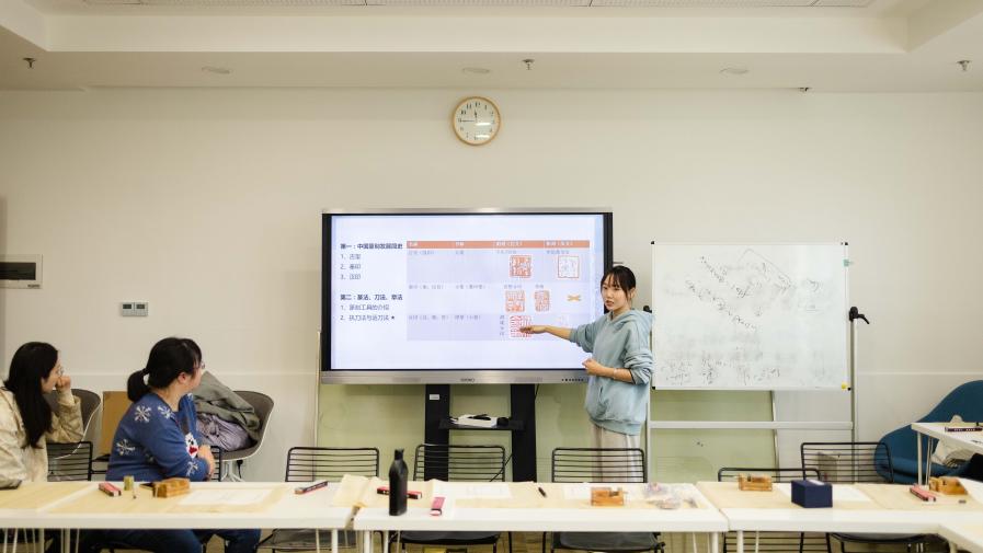 党的二十大将“传承中华优秀传统文化,满足人民日益增长的精神文化需求”作为推进文化自信自强的重要内容。中国篆刻是我国独特的一种艺术表现形式,至今已有3000多年的历史并于2009年列入联合国教科文组织《保护非物质文化遗产公约》人类非物质文化遗产代表作名录。为了传承优秀传统文化,丰富教职工精神文化需求,2022年11月18日中午,av影片 工会和学校大夏印社在闵行校区学生发展中心联合成功举办了“铁笔铸秋色—av影片 吉语印篆刻体验活动“。