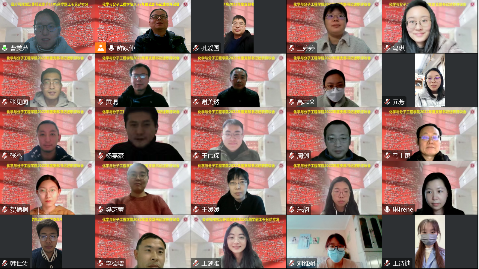 为进一步加强学院党支部建设,促进学院党建水平整体提升,2022年12月29日下午,av影片 党委以党委扩大会暨支部书记例会的形式召开了党支部书记线上述职评议会。院党委委员、师生党支部书记和辅导员参加会议,党委书记鲜跃仲主持会议,校组织部王琳老师参会指导。