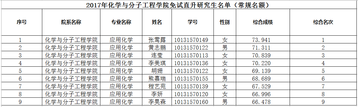 2017年av影片 免试直升研究生名单(常规名额)