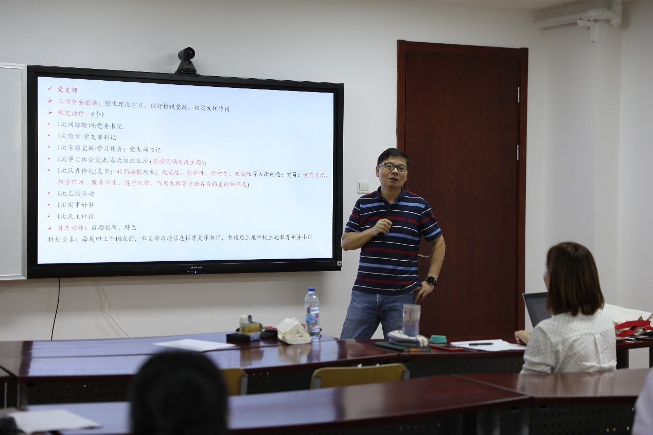 根据学校安排,立足学院具体情况,本次主题教育以学院党政班子为重点并以党支部为单位对全院党员全覆盖。鲜跃仲提出,在主题教育活动中要时刻把握主题主线,牢记“守初心、担使命,找差距、抓落实”的总要求,统筹协调“学习教育、调查研究、问题检视和整改落实”“四个到位”重要举措,实现“理论学习有收获、思想政治受洗礼、干事创业敢担当、为民服务解难题、清正廉洁作表率”“五句话”目标,将主题教育与学院的基层党建紧密结合,与学校对学院的巡察整改要求紧密结合,与新中国成立70周年紧密结合。针对校党委对学院巡察反馈存在的问题,特别是基层党建存在的突出问题,鲜跃仲要求各支部和党员要全方位多角度检视存在的差距和不足,按照对标争先的要求,夯实支部党建工作。