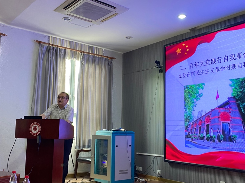 讲述百年大党践行自我革命的历史进程时,曹教授从学者视角,紧扣历史维度,按照发展脉络梳理了《中国共产党章程》的诞生及历次重要修订,第一部党章到现行党章,经历了百年岁月的洗礼,从结构到内容都更加完善,记录着党的思想理论、政治主张、路线方针政策、制度机制不断发展演变的历史轨迹。辅之有趣的历史故事,曹教授向与会党员介绍了党在新民主主义革命时期自我革命的探索、在社会主义革命和社会主义建设时期自我革命的发展、在改革开放和社会主义现代化建设新时期自我革命的推进以及在中国特色社会主义新时代自我革命的深化和完善。