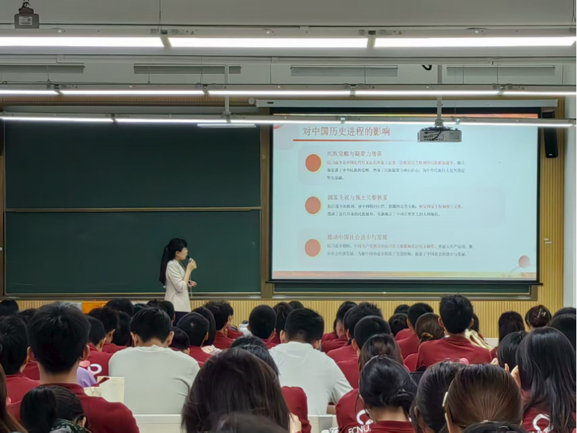 党课从“抗战的历史回顾”“抗战胜利的意义”“抗战精神的传承”三个方面展开,通过详实史料与生动案例,带领党员重温中国共产党在抗日战争中发挥中流砥柱作用的光辉历程。王老师以九一八事变为切入点,讲述中国共产党人冲锋在前、浴血奋战的英雄事迹,强调抗战胜利是中华民族从危亡走向复兴的历史转折点,勉励青年党员以史为鉴、开创未来,勇担时代重任。