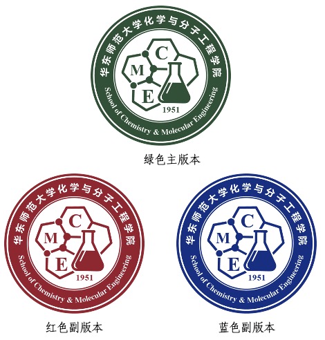 院徽采用圆形构图,外圈标注中英文院名,内圈融合分子结构、实验烧瓶与“1951”建系年份,分别象征学科本质、实践精神与历史传承。主色调选用富有化学学科特色的绿色,既呼应科学理性与严谨治学的学院气质,又彰显创新、活力与可持续发展的时代追求。